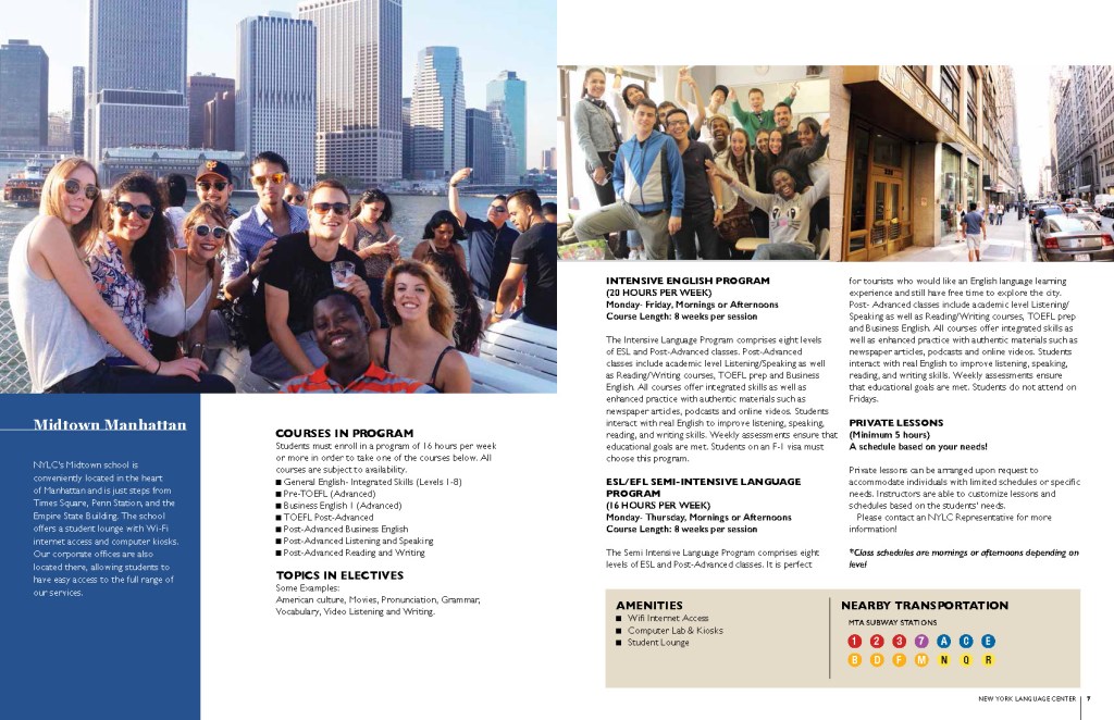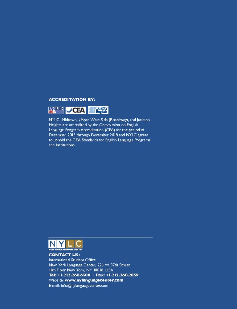 With more than 30 years of experience teaching English as a Second Language, NYLC has gained a reputation for providing high-quality education in a friendly and supportive environment at an affordable price.