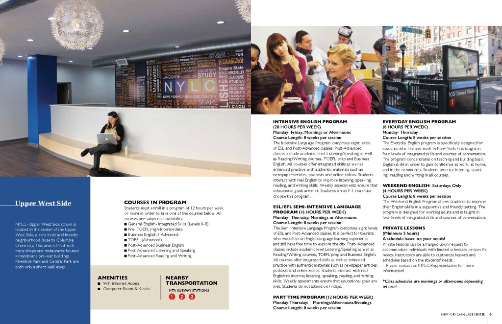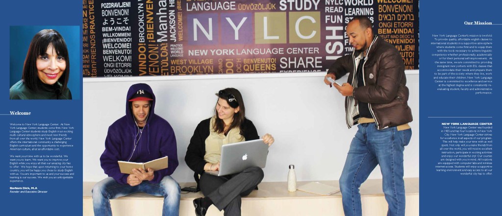 A brief history of how I got the privilege to design the NYLC Brochure. NYLC posted a pamphlet design contest online in 2011 and luckily my design won. From then on Ms. Barbara Dick, the Executive Director of the New York Language Center has been my client. I designed brochures, flyers, posters, web banners, and other printed collaterals for the company.