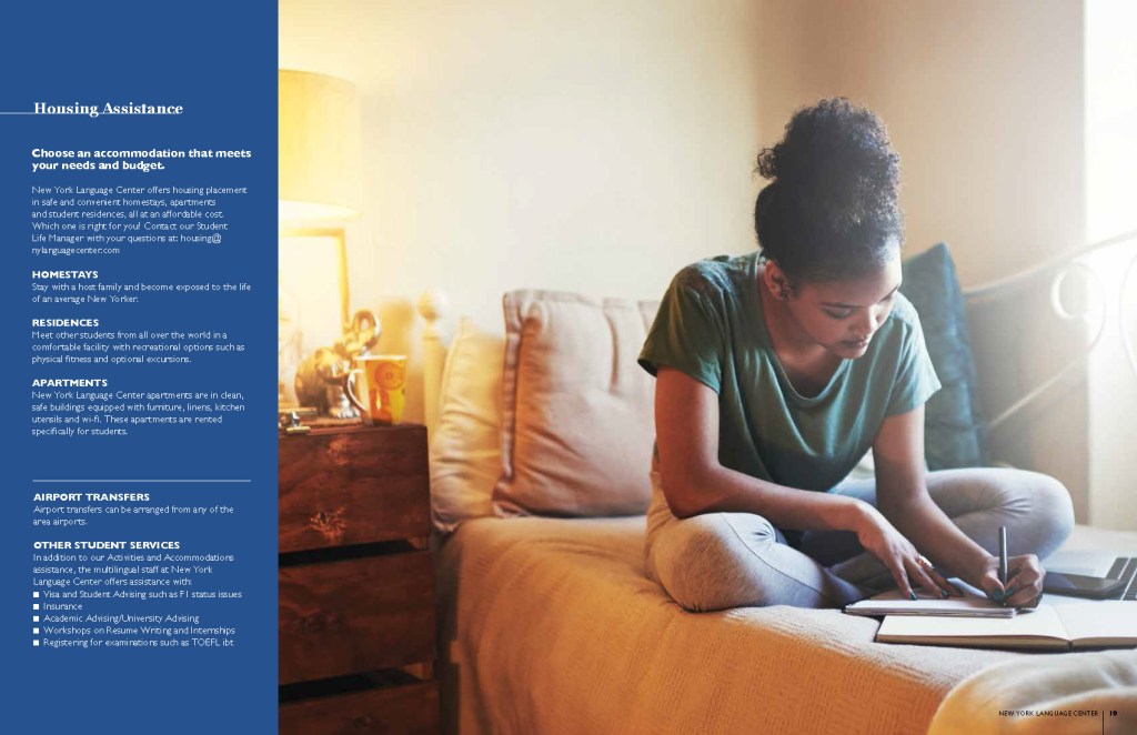 This project is the second brochure I designed for NYLC. This brochure has a gatefold front cover to showcase more visual content that balances the copy to make it more appealing to the NYLC’s future students.