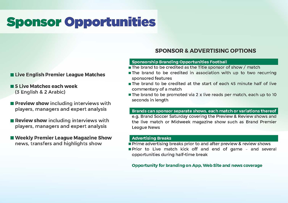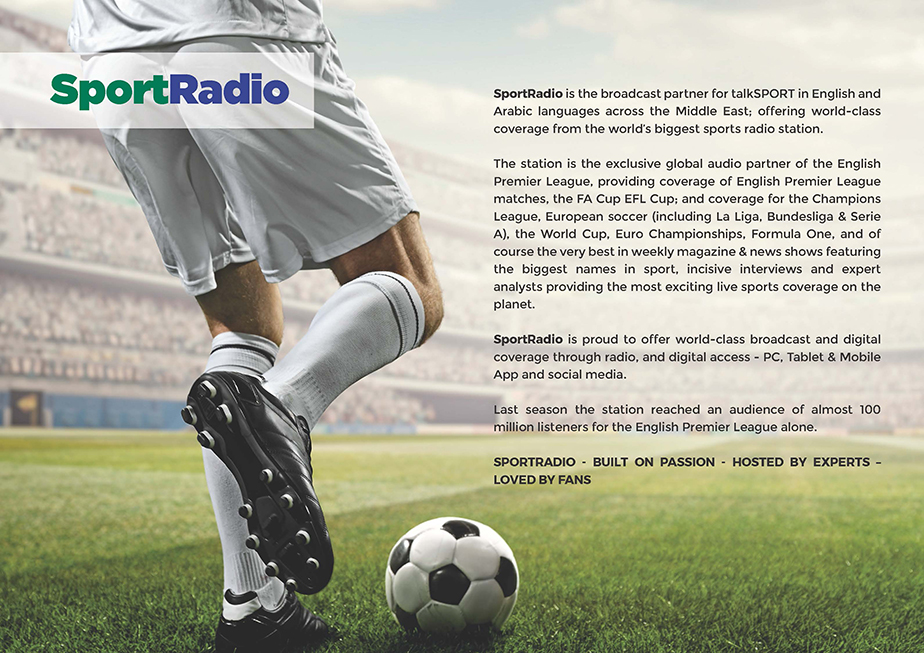 Client: SportRadio is the broadcast partner for talkSPORT in English and Arabic languages across the Middle East; and the exclusive global audio partner of the English Premier League, providing coverage of English Premier League matches.